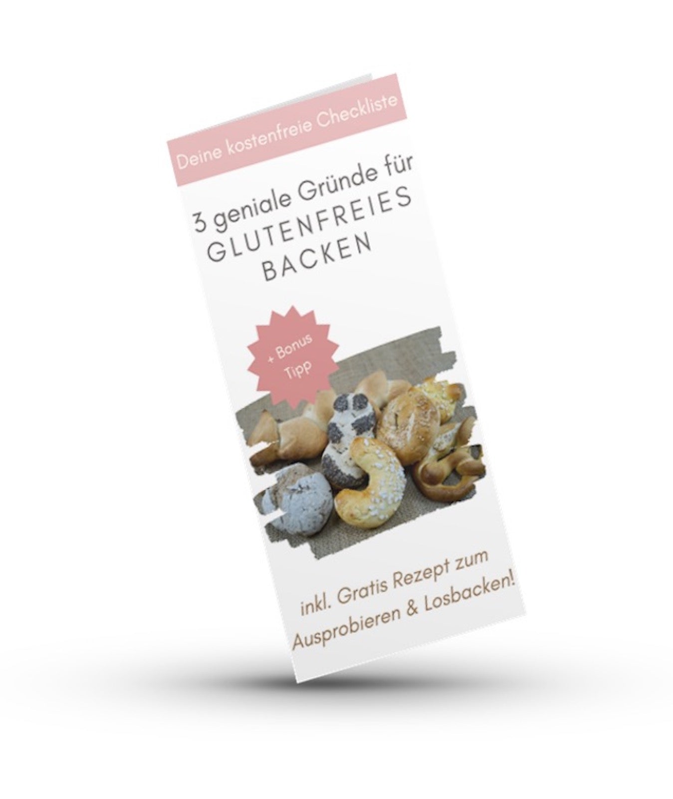 Mit dieser Checkliste möchten wir dich dazu einladen, einen kleinen Vorgeschmack in unsere Welt des glutenfreien Backens zu erhalten. Du bekommst die 3 wichtigsten Gründe, warum es auch für dich sinnvoll (und vor allem lecker) sein könnte, glutenfreies Backen einmal auszuprobieren.
